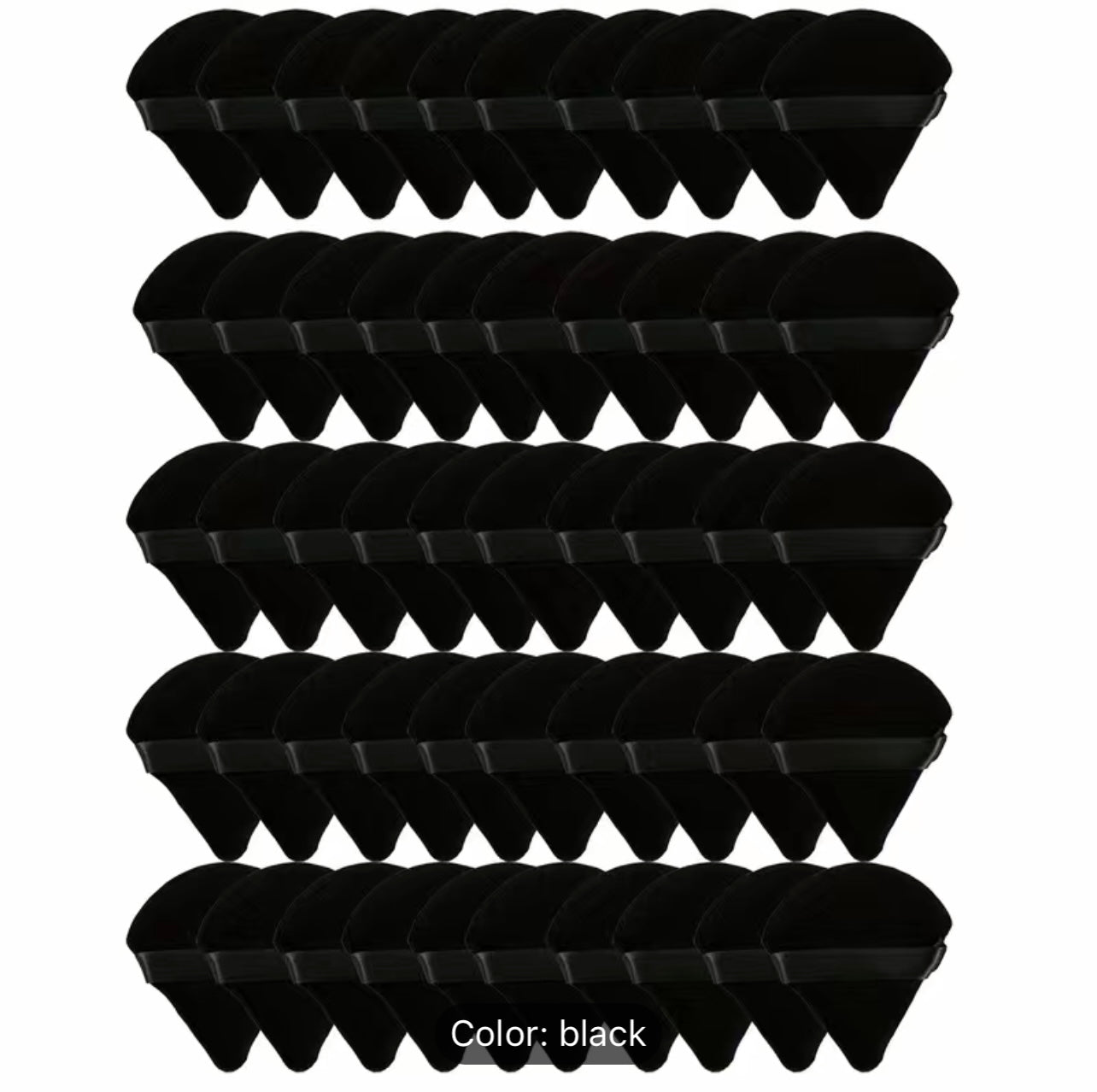 50 pcs Black soft Velvet Makup puffs sponges with strap from loose poder and Body powder, professional Beauty makeup Tools.